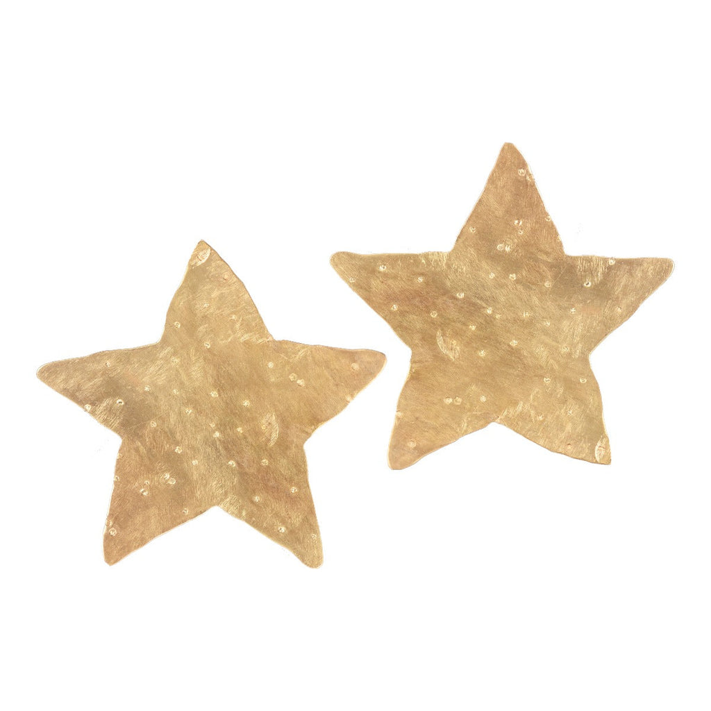 Hand shaped celestial motifs shimmer with hammered textural warmth. Sterling silver posts. Nickel and lead free.