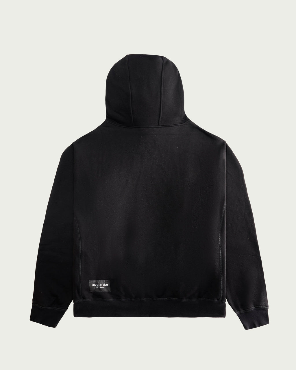 Introducing our Label-Stitch Black Hooded Cotton Sweatshirt, made with 100% organic cotton for a comfortable and eco-conscious choice. With functional snaps and hidden pockets, this relaxed-oversize fit (size up for a more fitted look) offers convenience and style. The signature blue detailing and label-stitched design give it a streetwise edge, perfect for elevated leisure wear. Gender neutral and with a modern look, this sweatshirt is a must-have addition to your wardrobe.
