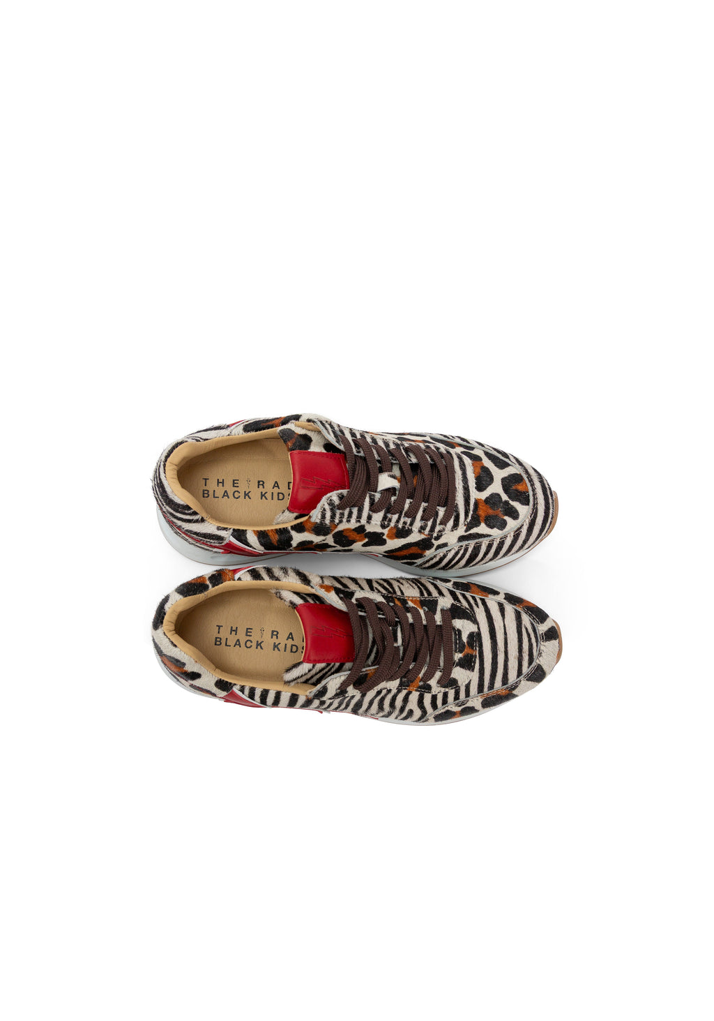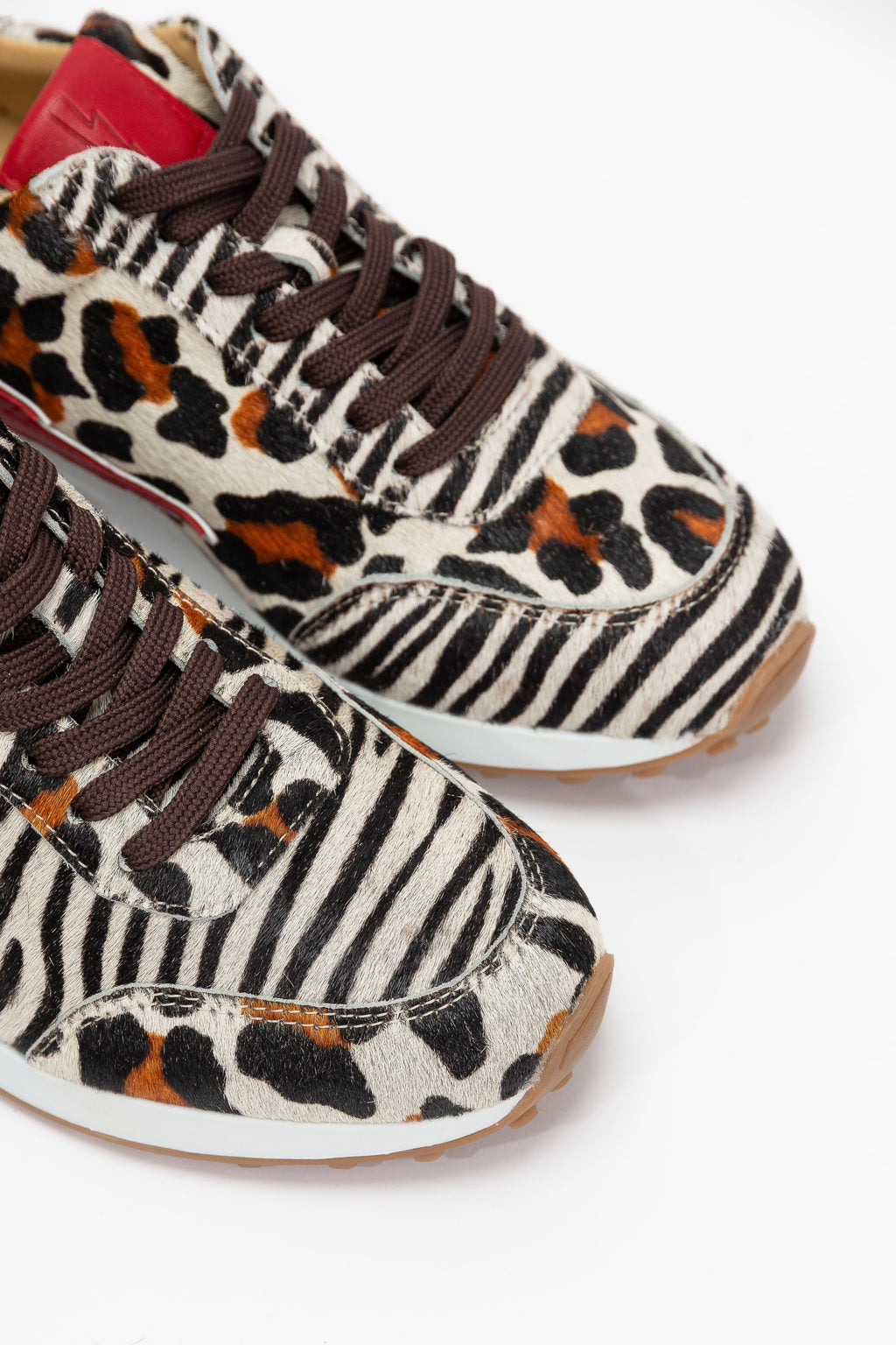 This colorway is got this nickname because of the rabid mismatch of natural undyed cow fur leathers. Please note the left shoe and right shoe are mismatched intentionally