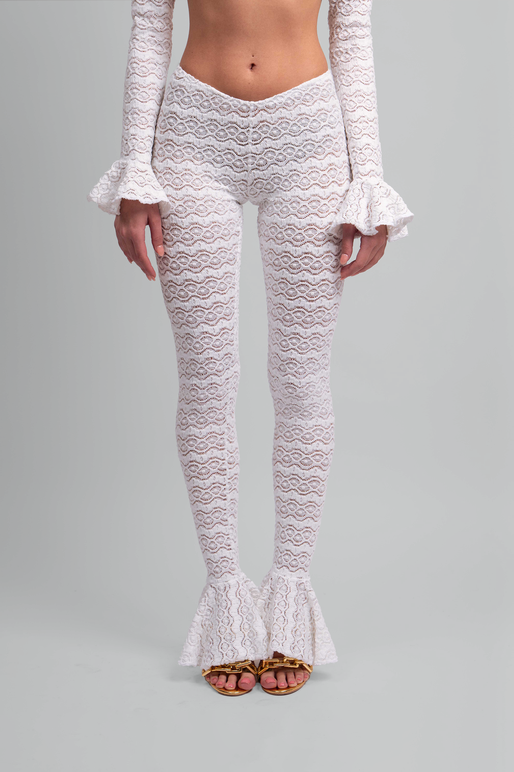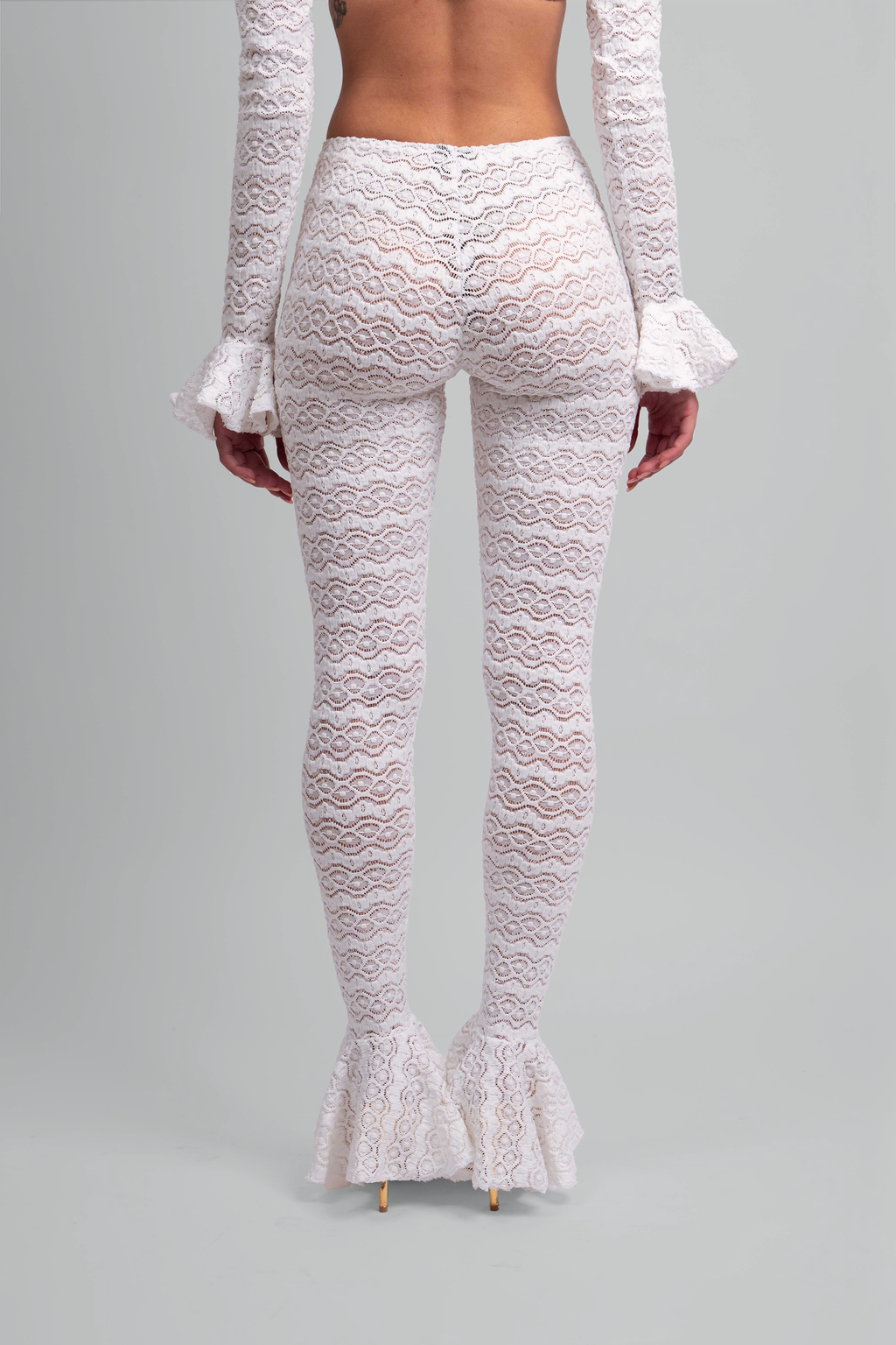 • Low-rise, ruffled pants