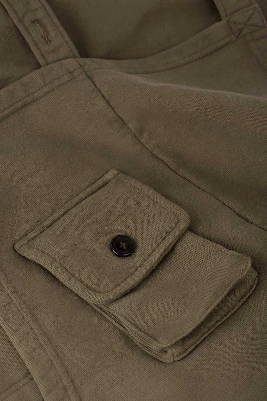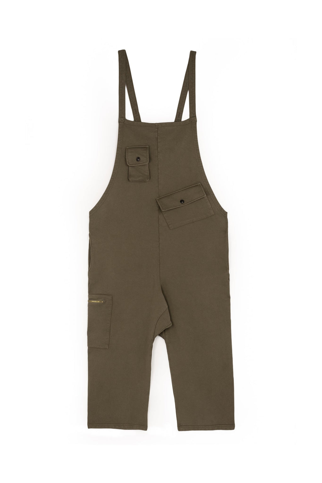 Objective with these was to eradicate pain points associated with overalls. No distinct pants to overall "belt." Heavyweight fleece. Drop crotch, adjustable shoulder straps. Cropped leg. 2 rear pockets , 1 cellphone pocket, one offset front pocket, two side seam pockets and one leg cargo pocket. This piece is the most comfortable piece of the collection. Please note numbers on these will be limited***.