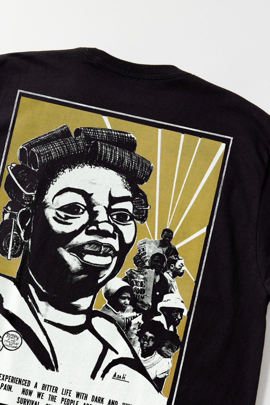 100% of the net proceeds from the Survival Pending Revolution Collection will be donated to Asali Caring Circle, supporting Gayle Dickson’s ongoing work and helping ensure her safety.