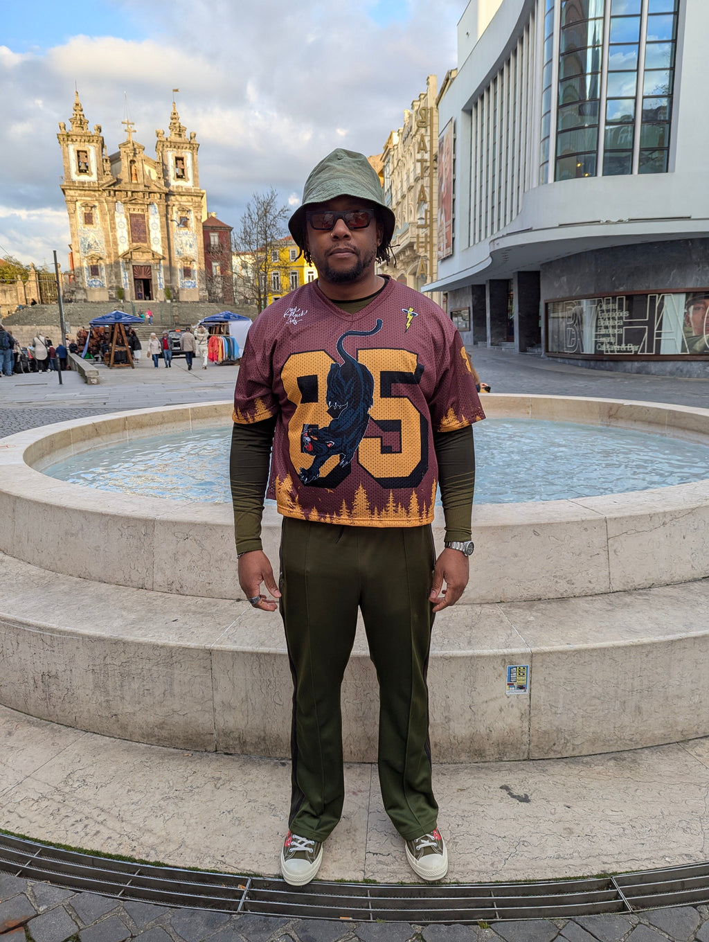 One of the first pieces of that era was a football jersey, printed on a heavy weight t-shirt with applique striping, with numbers on the front and back