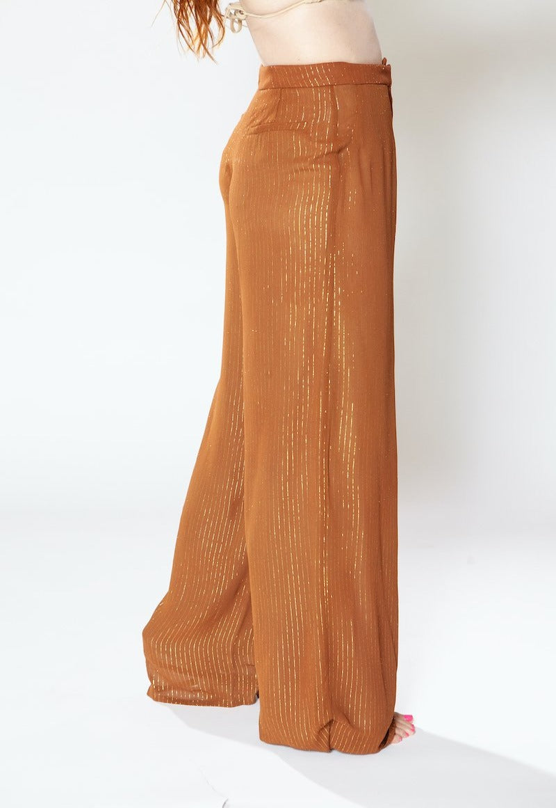 She has been mixing her own concoction of moisturizers since she was in high school, always dreaming of making a business out of it. When she graduated college, her only goal was to land a job that would make her enough money to support herself while also paying off her student loans. Three years later, she still can’t stop thinking about what could have been. She decided to take a gamble and invest some money into creating her own brand of organic products like soaps, body wash, and lotions. Much to her surprise, her online business has performed amazingly well and now her products will be on the shelves of Target. As a means to celebrate this major career milestone, she and her three sisters are headed to the Bahamas for the weekend. She packed her favorite new brown shimmery high waist pants.