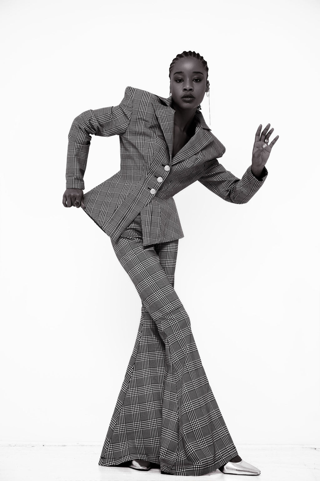 Introducing the Genevieve Blazer, a statement in tailored elegance. With its clean, structured lines and subtle, refined detailing, this blazer redefines sophistication. Its sharp lapels and bold silhouette are balanced by the grey plaid print, making it versatile yet undeniably striking. Perfect for those who appreciate understated allure with an edge.