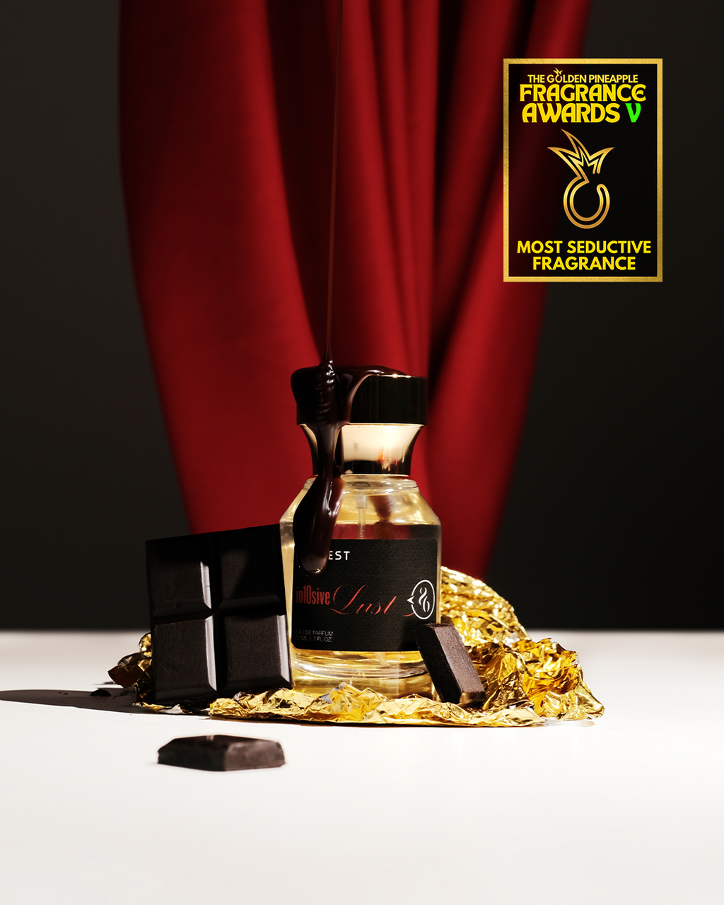 Experience: A fragrance that embodies both indulgence and mystery, In10sive Lust opens with an irresistible top note of chocolate-dipped strawberries, paired with the zest of lemon and the warm kick of cardamom. The heart unfolds into the comforting spice of cinnamon and amber, anchored by the creamy richness of champaca. At the base, dark patchouli and labdanum offer depth, while praline and tonka bean create a final, irresistible note of warmth and luxury. It’s the scent of indulgence with every spray.