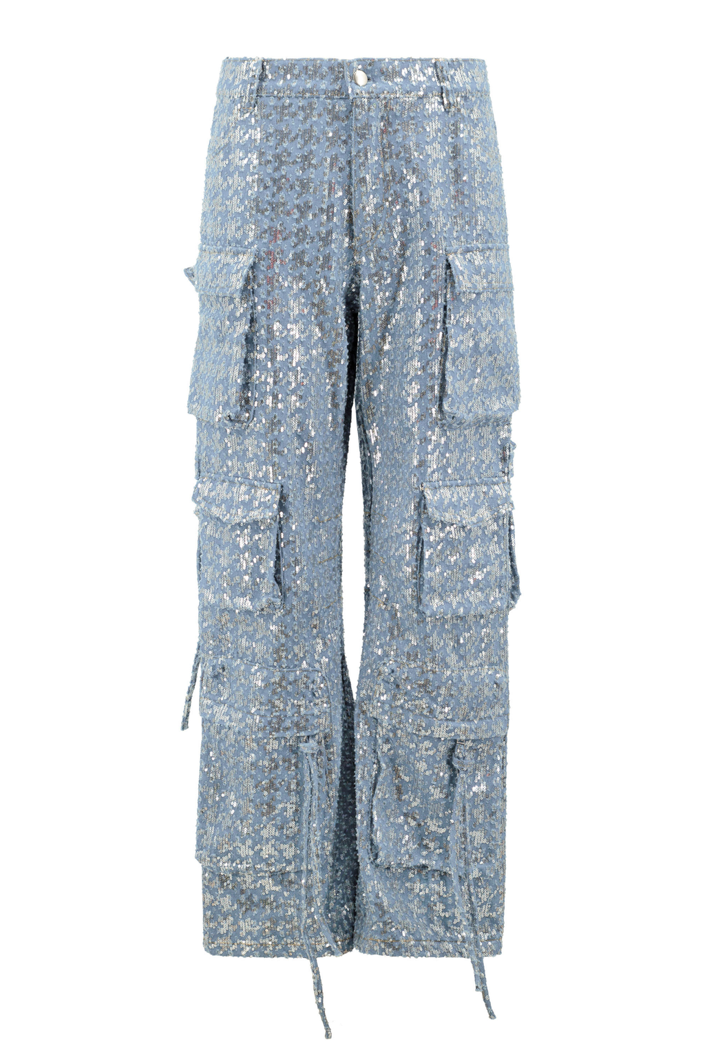 The Kelly Cargo Pants redefine utilitarian chic with a high-fashion twist. Available in light and medium blue, these statement cargos blend the rugged appeal of classic cargo pants with the opulence of a full-sequin finish. Featuring a relaxed fit, multiple pockets, and zip & silver button closure, they offer both functionality and drama. Whether paired with a sleek crop top or layered with our matching sequin denim jacket, these pants are built for those who turn the sidewalk into a runway.
