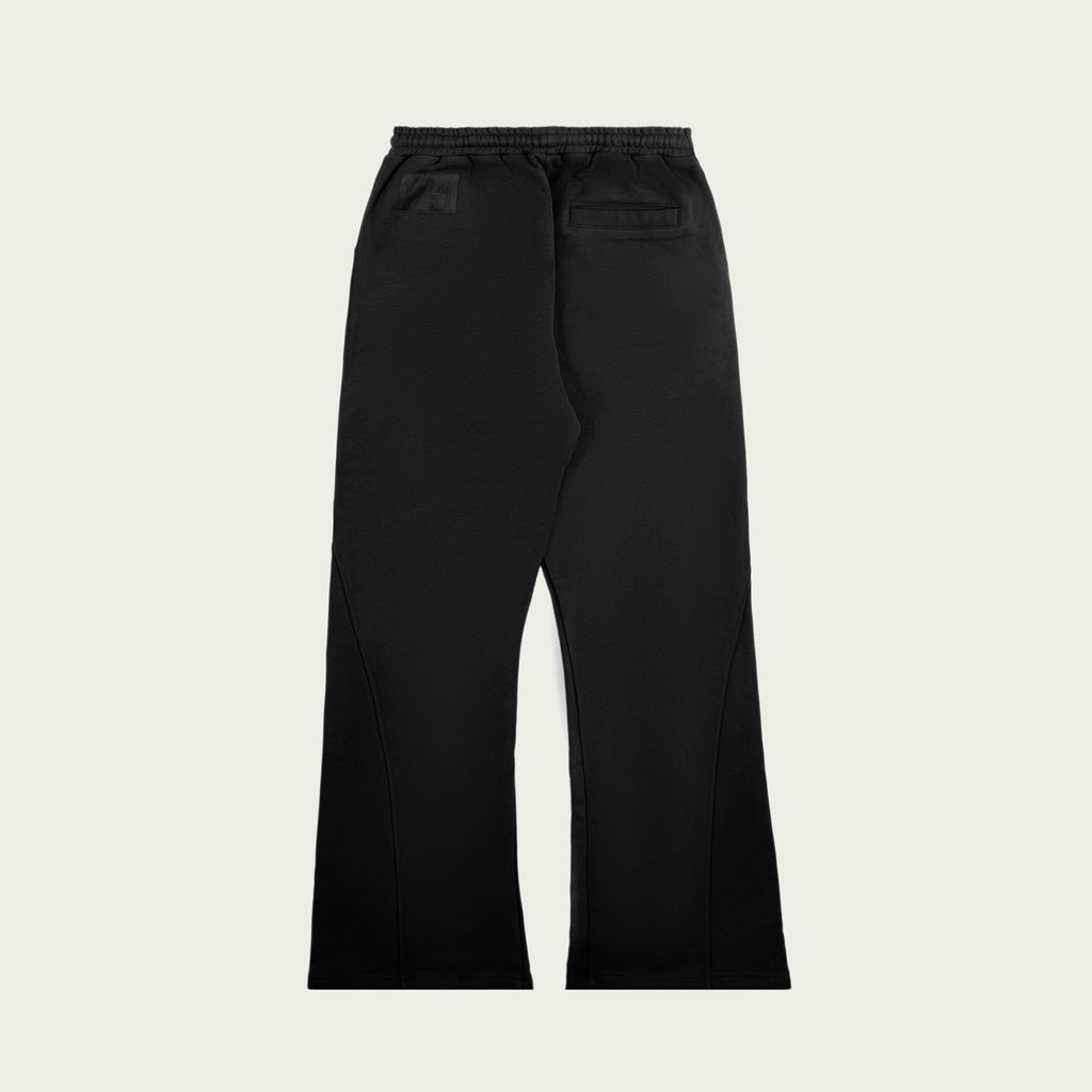 Experience ultimate comfort and style with our Label-Stitch Black Cotton Flare Sweatpants. These sweatpants are made from 100% organic cotton and feature a j-curve leg and slight flare, giving them a modern and gender neutral design. The unique paneling on the sides adds a touch of uniqueness, while the drawcord with signature blue detailing ensures a snug fit. For a more relaxed look, simply size up.