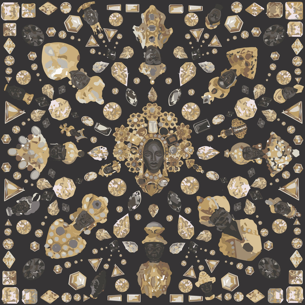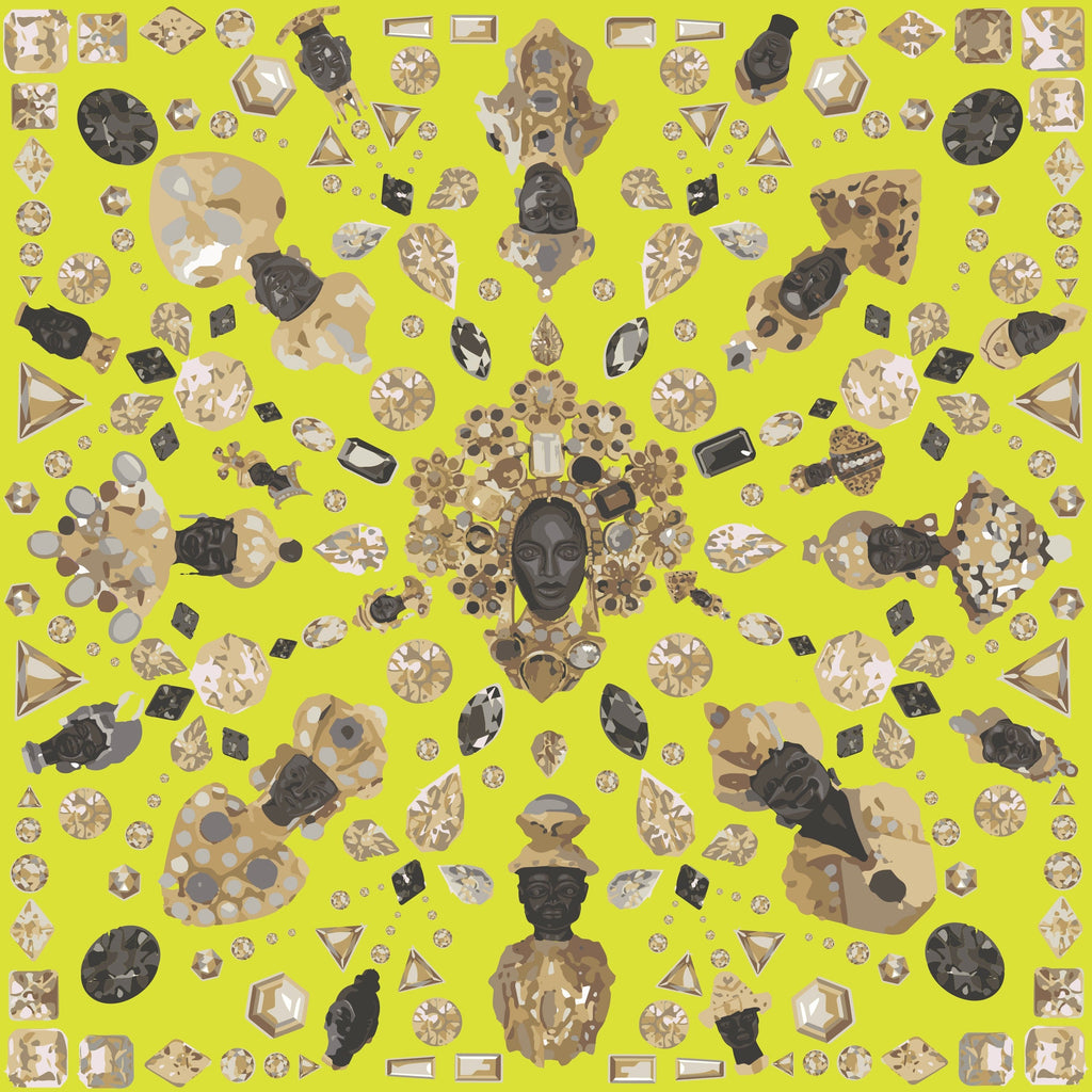 The metaMOORphosis Collection : Edition 1 : A silk twill scarf in chartreuse with our unique artistic interpretation of the prominent Moorish kings.