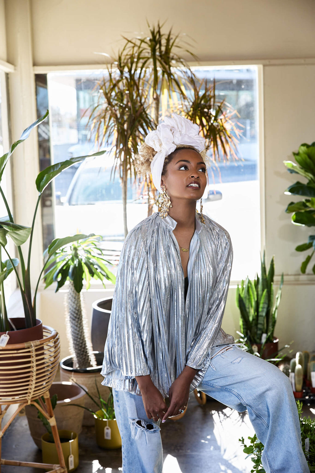 This silk headwrap glistens just like freshly fallen snow. The Dupioni silk will dazzle at black tie events while giving you coverage and confidence. Or, if you’re a bride, this wrap will pair beautifully with any wedding gown. The crisp fabric will hold bows and tall styles comfortable.